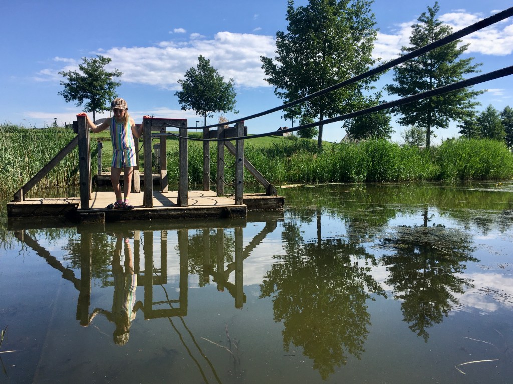 Nu lopen we vier keer vijf kilometer. Zonder drukte, zonder publiek en met alle mogelijkheden om van de route af te wijken. Gelukkig maar, want als we langs een speeltuin komen, wil ze op de kabelbaan. En als we bij het water zijn, moeten we natuurlijk even met het pontje naar de overkant.