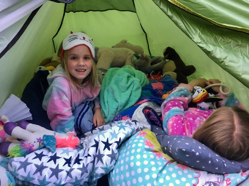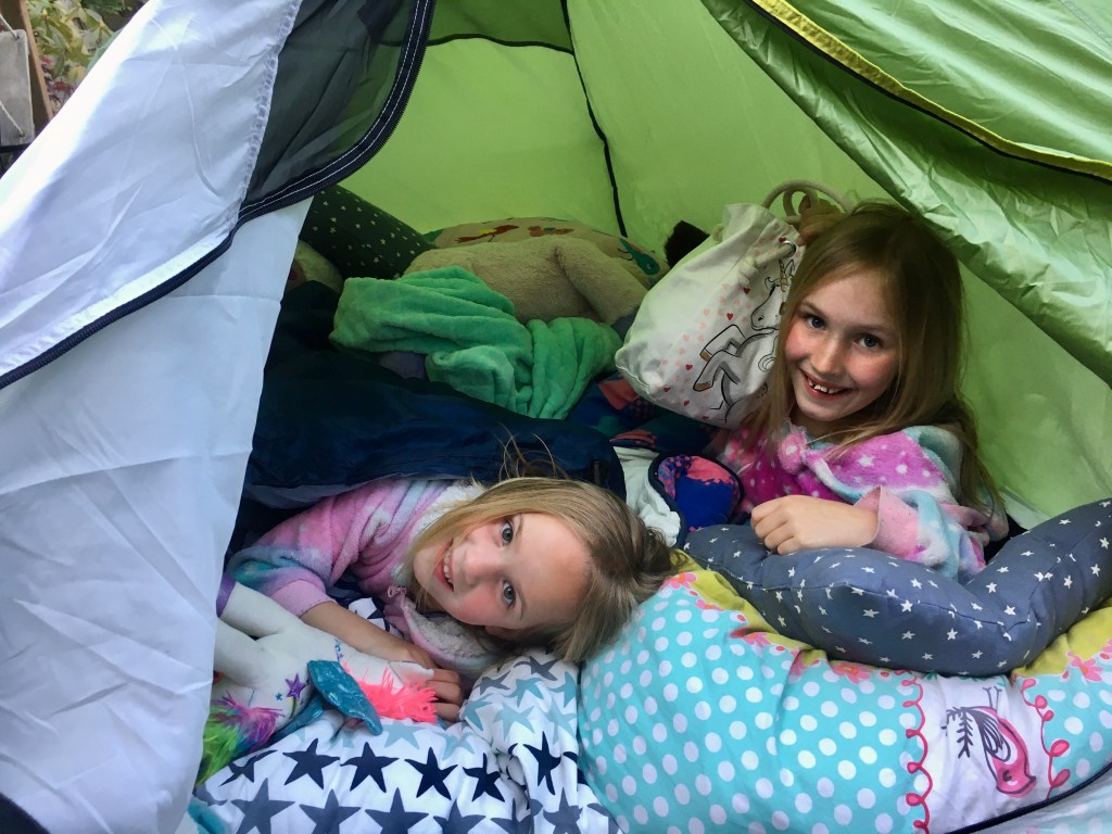 De meiden speelden dan ook fantastisch samen. De poppen kregen een eigen plekje in de tent. Lampjes en wekkers gingen mee. Leesboekjes. Kussens. Pyjama’s. En de onvermijdelijke vraag volgde: ‘Pap? Mogen we vannacht in de tent slapen?’