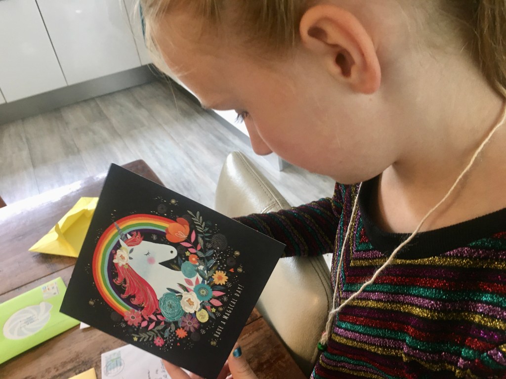 Gedurende de dag gaat haar blik geregeld naar de kaarten. Er staan eenhoorns op, hartjes, olifanten, pandaberen en grote glimmende cijfers. ‘Bijna 8. Ik word echt groot, hè mam?’ zegt ze tegen me. Het is net of ze mijn gedachten uitspreekt. Morgen wordt vast een spannende dag met veel te veel prikkels, maar met de voorpret zit het in ieder geval goed.