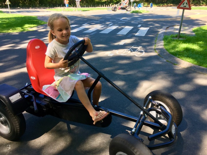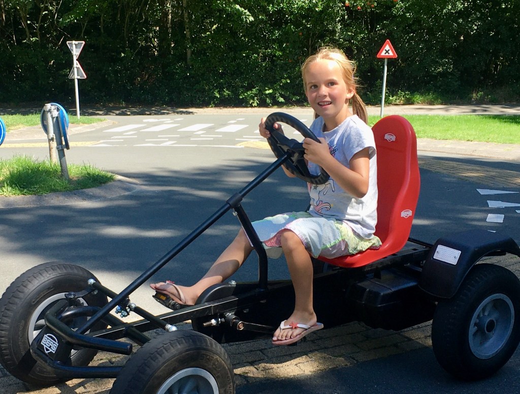 Terug naar vandaag, naar het verkeerspark. Enthousiast rijden de meiden rond op hun skelters, alle verkeersregels negerend. En zie dán die jongste dochter, die kleine deugniet, met haar achteruitrijden en haar denkbeeldige botsing. ‘Nou? Wie ben ik?’ vraagt ze me uitdagend.