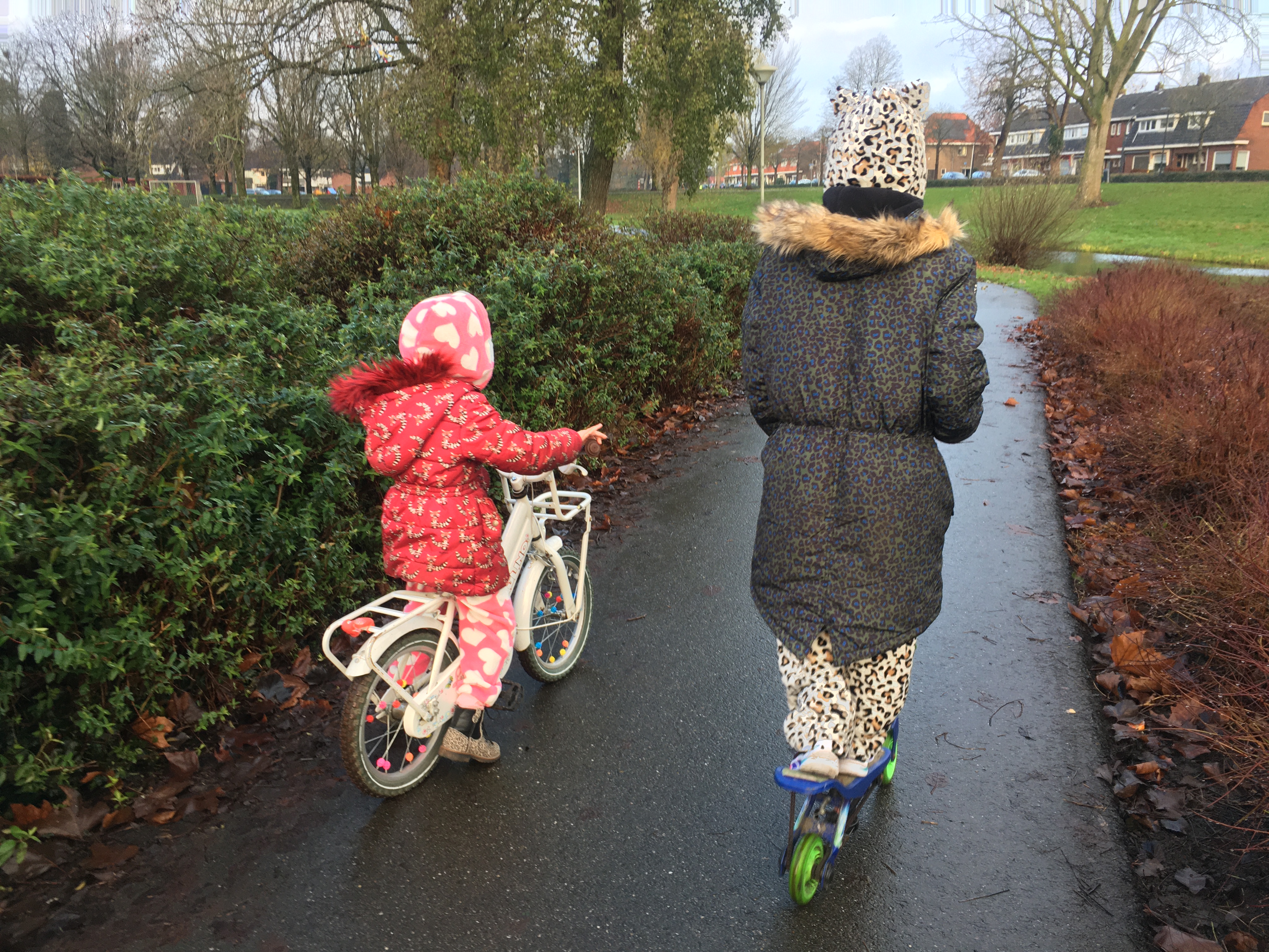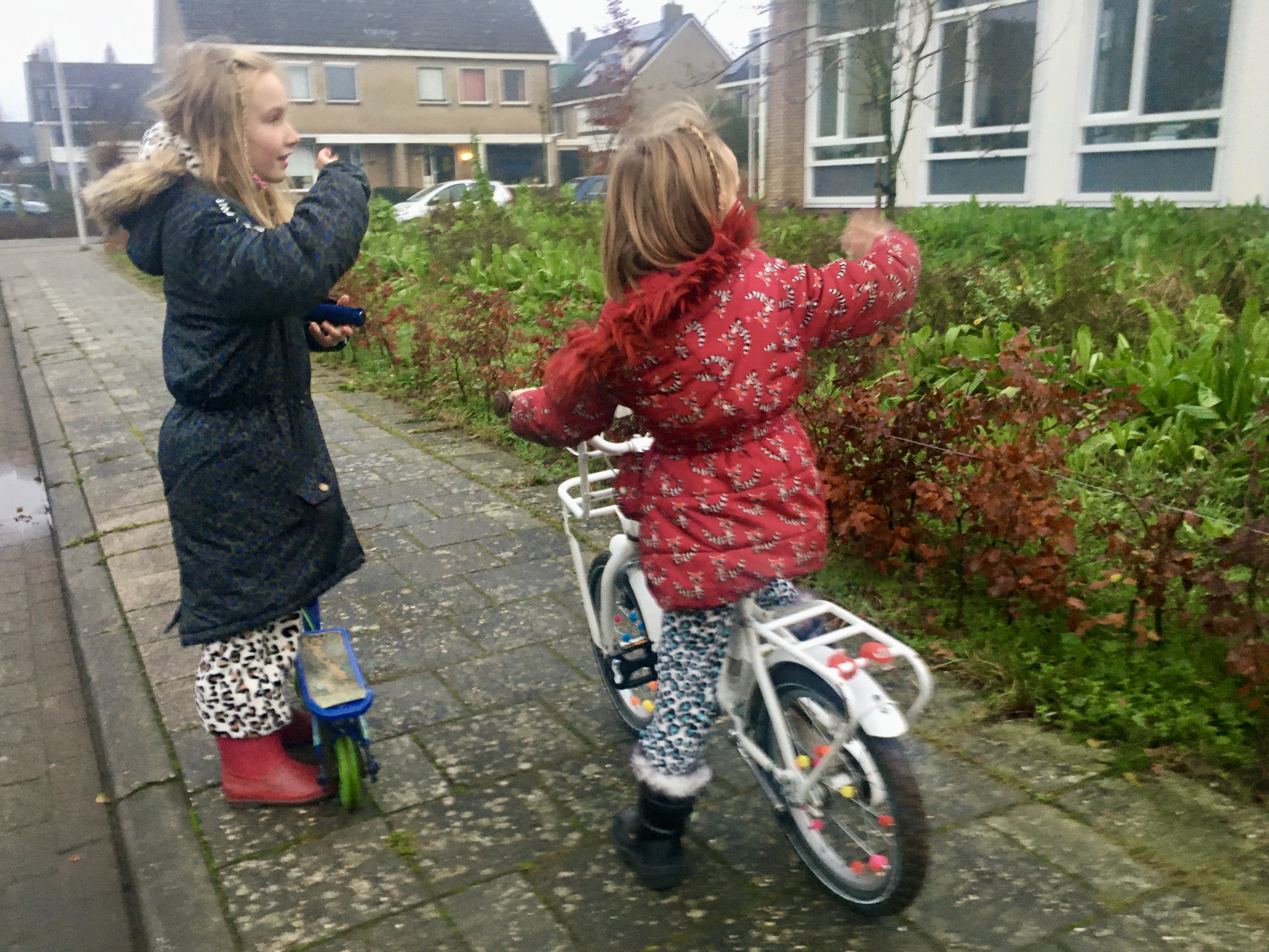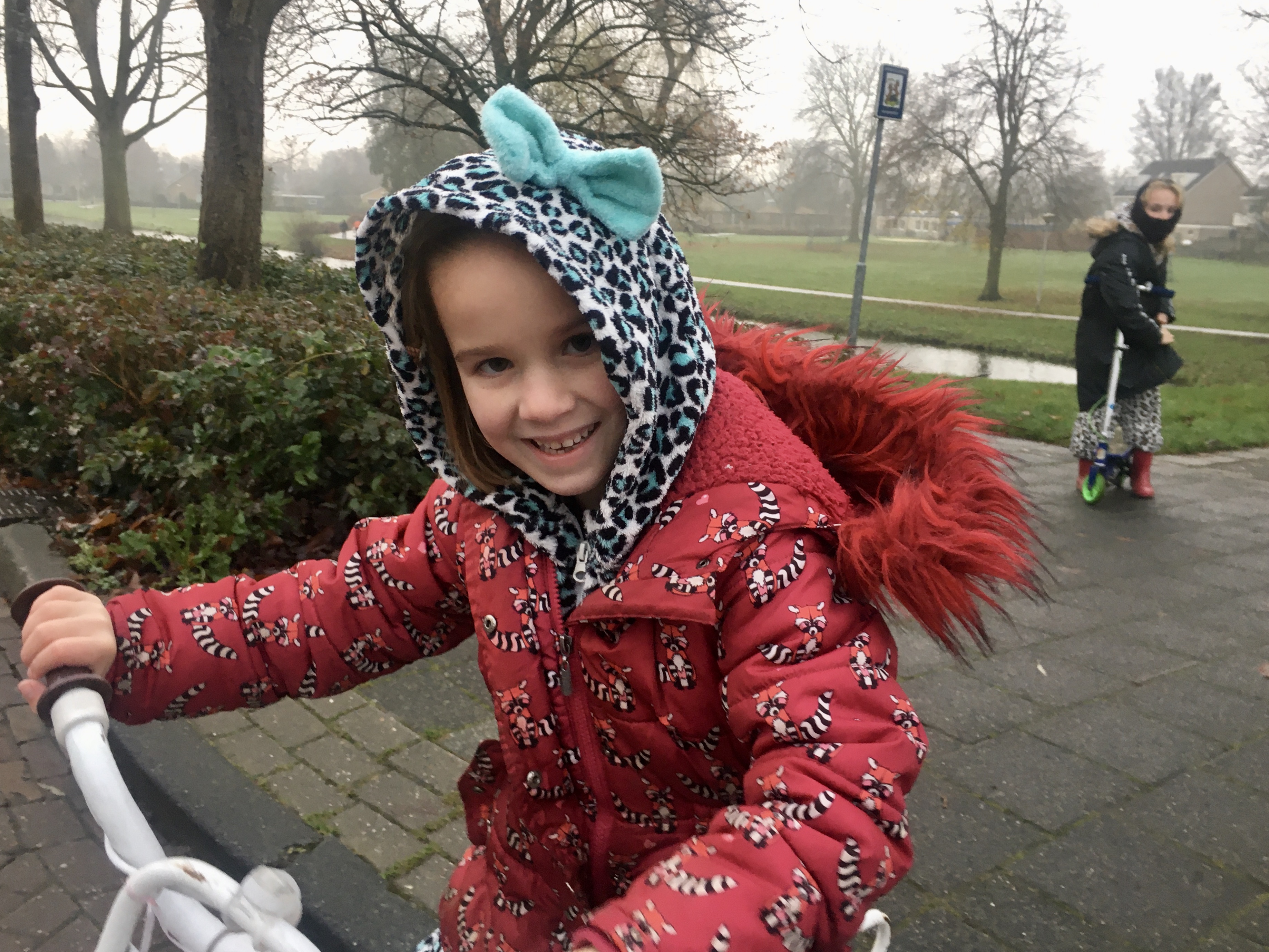 Aan het begin van de thuiswerkperiode legde ik de meiden mijn probleem voor: ‘Gewoonlijk breng ik jullie naar school en wandel ik nog een paar kilometer. Hoe pak ik dat aan nu jullie thuis moeten werken?’ Ze kwamen zelf direct met de oplossing waarop ik al hoopte: ‘Dan gaan we toch samen een rondje om school?’