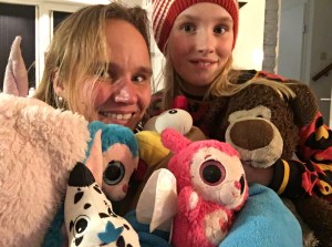 Straks kruip ik er ook in, samen met Eenhoorn en Chicoletta-Kip. Ik baal van mijn zere voet, waardoor ik me ineens zo verschrikkelijk onthand voel, maar ik ben vooral ontzettend trots op mijn fantastische en hulpvaardige meisjes.