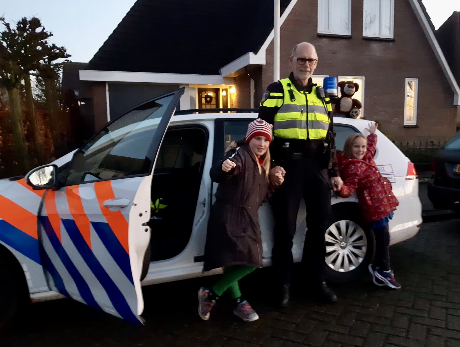 Yntusken binne der pakesizzers, twa prachitge famkes. Sy sjogge bewûnderjend nei ús heit, har pake, op as er syn unifoarm oan hat en genietsje, lykas ik eartiids, as sy in ‘e plysjeauto mei meie om in eintsje te riden.