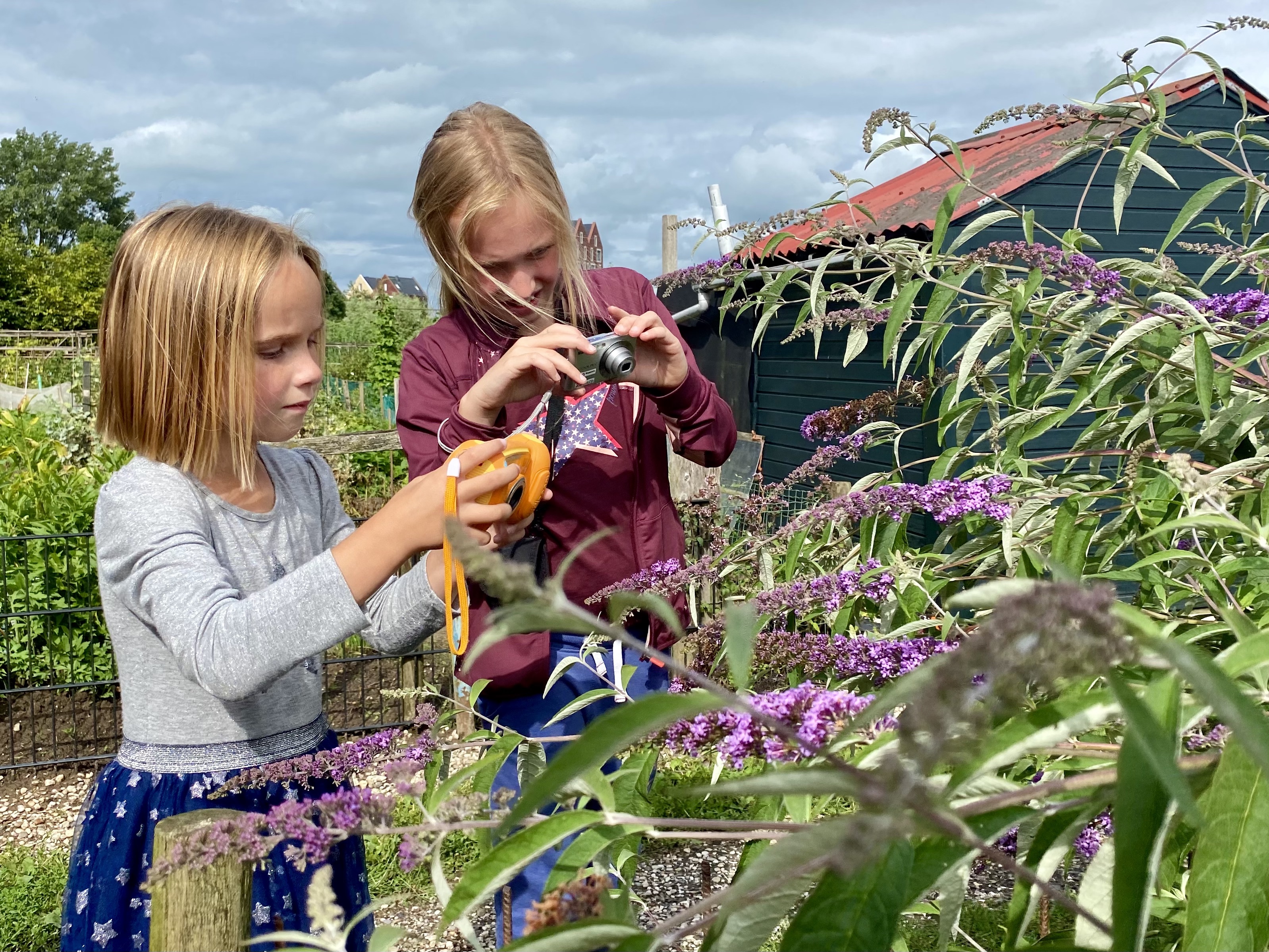 Enthousiast rennen mijn dochters voor me uit, om een paar meter verderop weer stil te blijven staan. ‘Kijk, een slak!’ roept de jongste. ‘En daar, een vlinder!’ wijst haar zus. Ze hebben hun camera’s bij zich en alles wat er ook maar een béétje interessant uitziet, leggen ze vast op de gevoelige plaat.