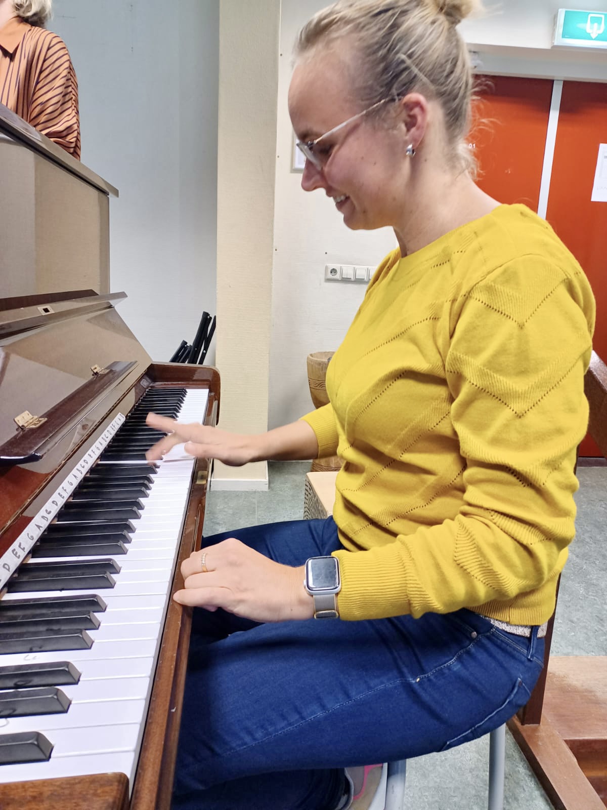Mijn wangen gloeien van inspanning. Mijn linkerhand rust op mijn bovenbeen, de rechter op de toetsen van de piano. Geconcentreerd luister ik naar de muziek die mijn collega’s maken en in mijn hoofd tel ik de maten af tot ik moet invallen. Het zijn slechts een paar noten, maar het lijntje is wél belangrijk voor het nummer dat we spelen.