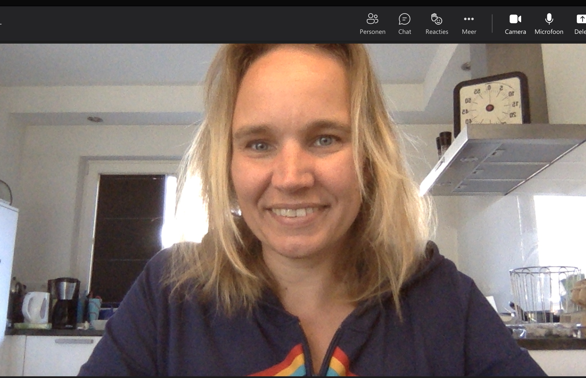 ‘Hoi mevrouw!’ klinkt dan een meisjesstem uit mijn laptop. Mijn gezicht klaart op, kennelijk loggen de andere leerlingen nu toch in. Dan vervolgt dezelfde stem: ‘We zitten nog op de gang, want er is geen docent voor onze les!’ Daar gaat mijn optimisme. Dit kon nog wel eens een lang lesuur worden.