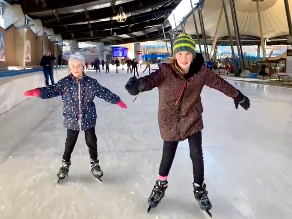 En dat gáán we. Na een autorit van drie kwartier (‘Moeten we echt zo lang rijden?’) stapt mijn oudste meisje als eerste op het ijs. Even moet ze wennen, al gauw worden haar slagen zelfverzekerder en glijdt ze keurig over de baan. Haar zusje houdt me stevig bij de hand, maar komt ook steeds beter vooruit. En het belangrijkste: de meiden lachen. Niet een beetje, maar breeduit.