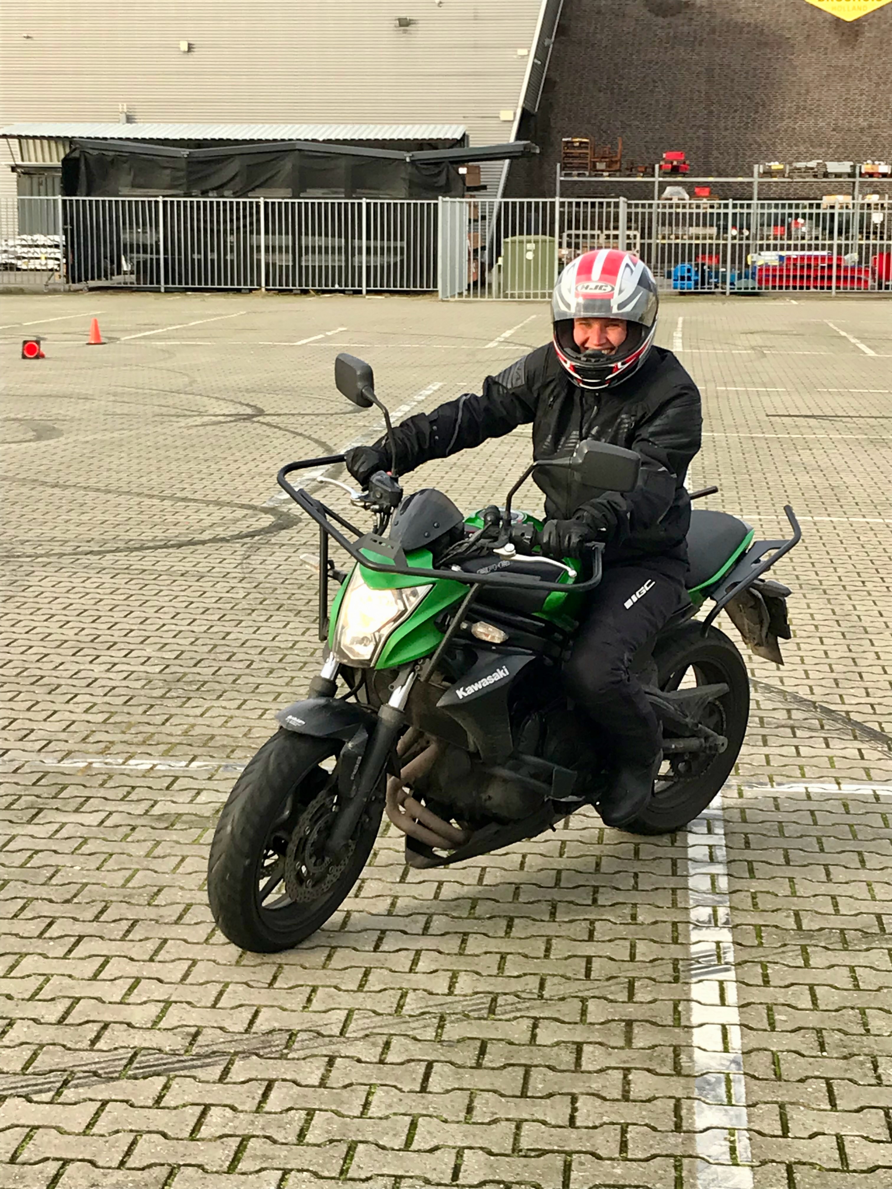 Ik stond echt op het punt op te geven. Ik zit voor mijn lol op de motor. Als de lol eraf gaat, kun je maar beter stoppen. Mijn instructeur dacht daar echter anders over. Toen hij ook inzag dat de halve draaien en de achtjes er deze keer niet in zaten, liet hij me de langzame slalom uitvoeren en wegrijden uit een parkeervak. Die oefeningen gingen wél goed, bedenk ik me nu ik dit schrijf.