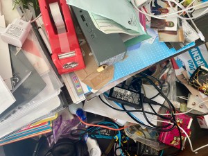Ik stoor me echt wel aan de stapel belangrijke papieren, aan de nietmachine, de tipp-ex, de koptelefoons, de perforator en alle andere spullen, maar kennelijk nog niet genoeg. Anders zou ik immers al veel eerder actie ondernomen hebben. Vandaag moet het dus toch gebeuren. Eerst haal ik de la helemaal leeg, zodat de berg op de kast groeit. Dan leg ik een paar woorden in Wordfeud, geef ik de planten water en bel ik mijn zusje.