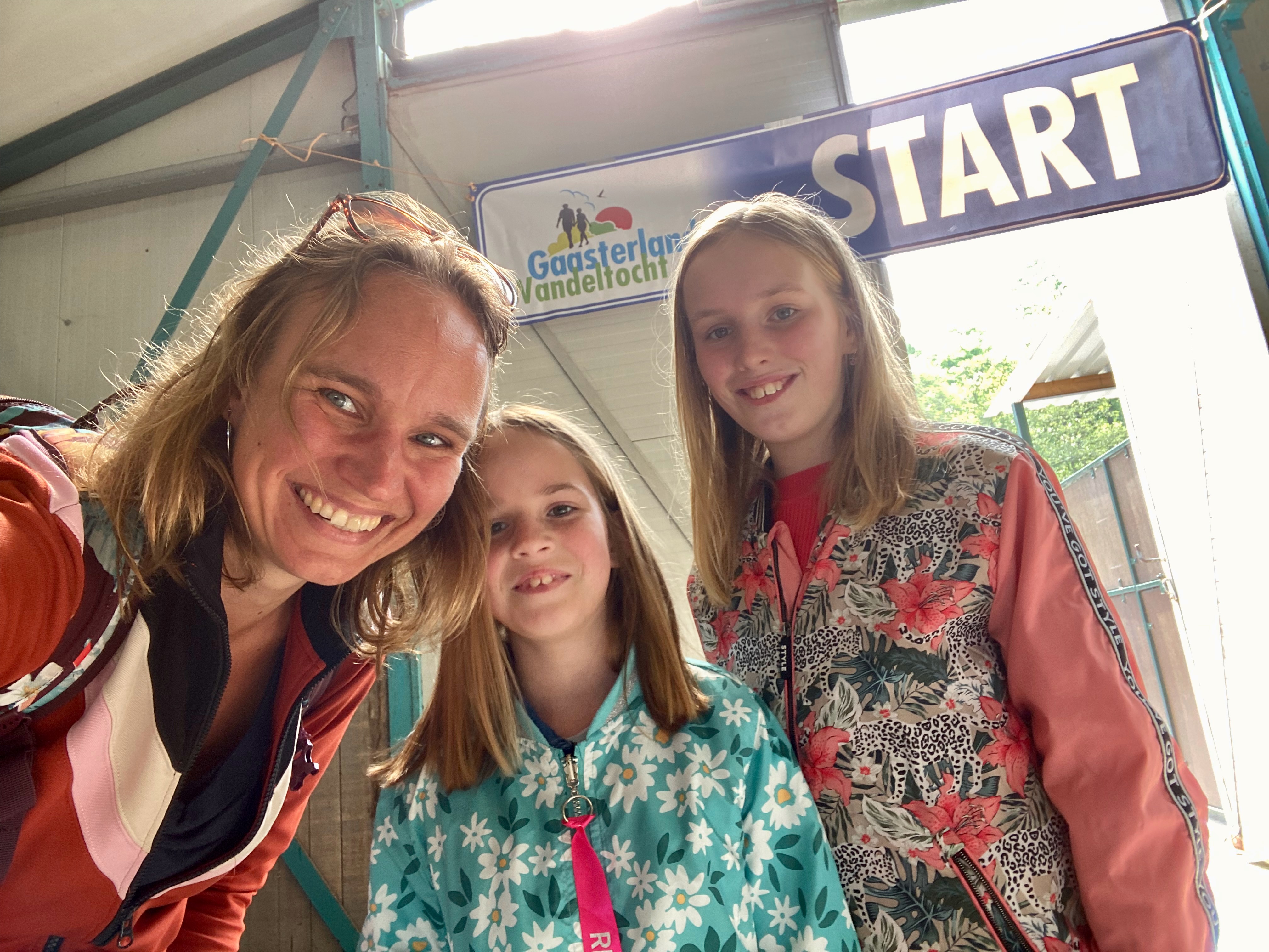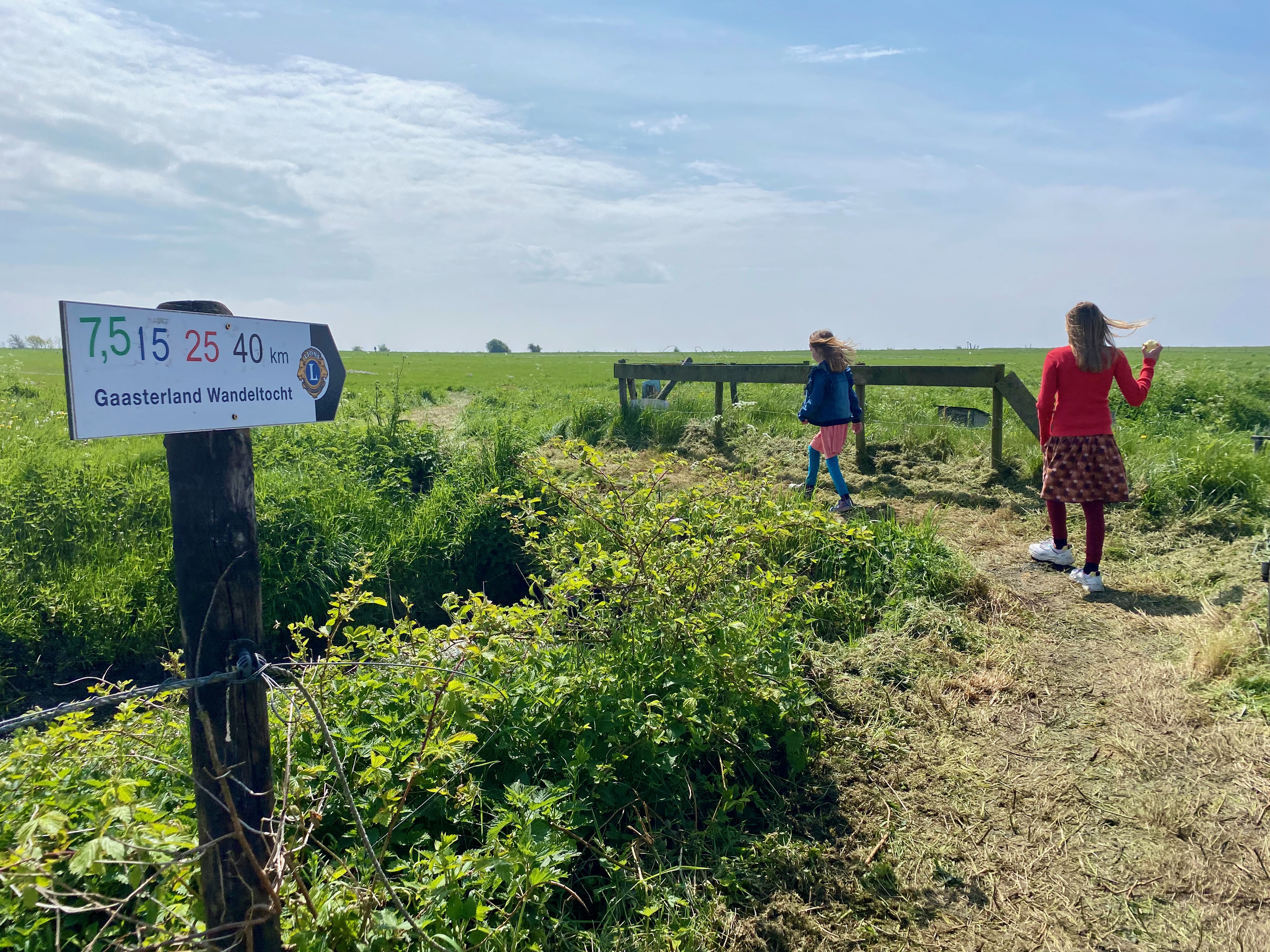 Tweeëneenhalf uur geleden waren we aan onze tocht begonnen. De meiden vonden het leuk-spannend. We waren speciaal voor de wandeling naar Zuidwest Fryslân gereden. Bij de manege waar we startten werden codes gescand, kregen we stempelkaarten en routebeschrijvingen en maakten we een foto. Het was zo officieel allemaal! Toen konden we echt op pad. Stralend grepen de meiden mijn handen en samen vertrokken we.