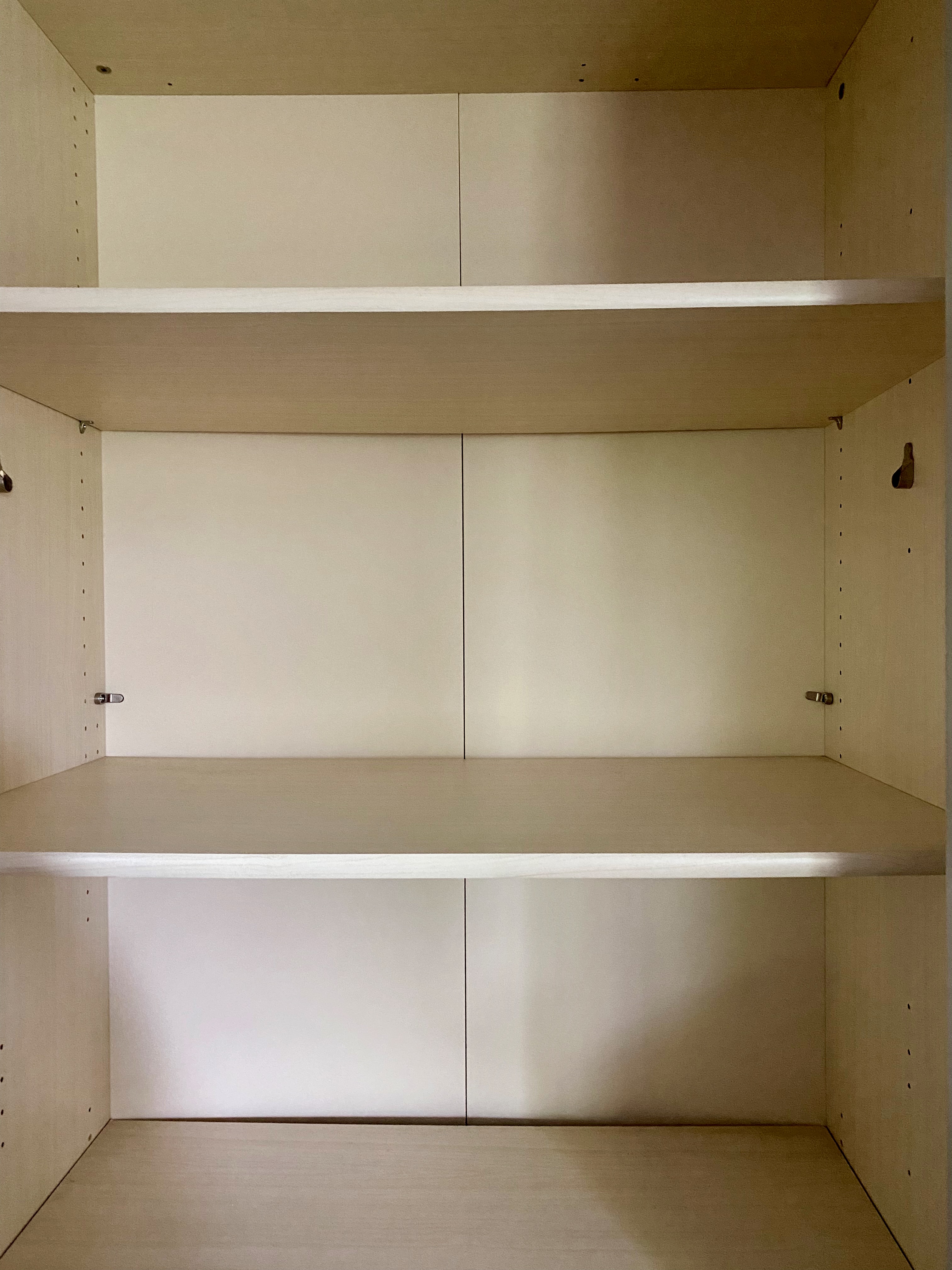 Om te beginnen app ik mijn zus en foto van de berg kledingstukken op mijn bed. ‘Haha,’ schrijft ze terug. ‘Dat is echt verschrikkelijk om te doen!’ Tot zover de mentale support. Een blik op mijn kast geeft meer rust. Nu de planken leeg zijn, zien ze er heel overzichtelijk uit. Even wil ik dat het zo kan blijven, tot ik me weer omdraai, naar mijn bed kijk en zucht.