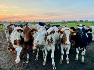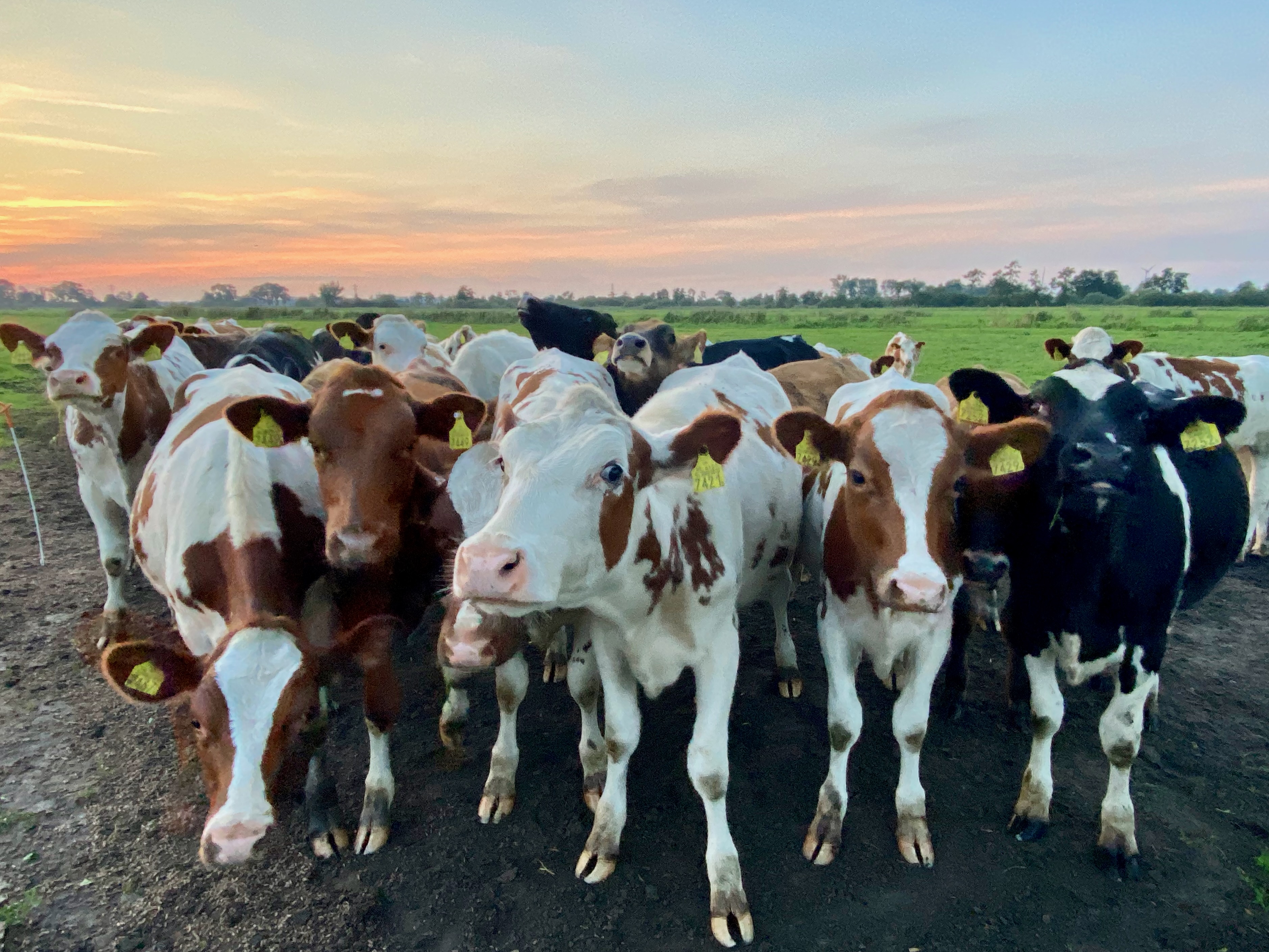 Ik heb maar weinig te bieden, eigenlijk niet meer dan een glimlach en daar hebben zij natuurlijk niets aan. Ongeduldig staan de jonge koeien voor me te dringen, terwijl ik de geur van vers gemaaid gras inadem. Heerlijk. Ik kijk over hun hoofden en zie de laatste flarden oranjerood avondlicht. Ik had gelijk toen ik net dacht dat het niet heel bijzonder was, maar misschien is de avond toch mooi genoeg om even stil te staan. Ik maak een foto en zwaai kort voor ik weer instap.