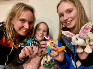 Zachte muziek klinkt uit de radio. Dat is ook het enige geluid dat te horen is. Alledrie zijn we geconcentreerd aan het werk: mijn oudste dochter bouwt een konijn, haar zusje maakt een papegaai en ik zet een motor in elkaar.