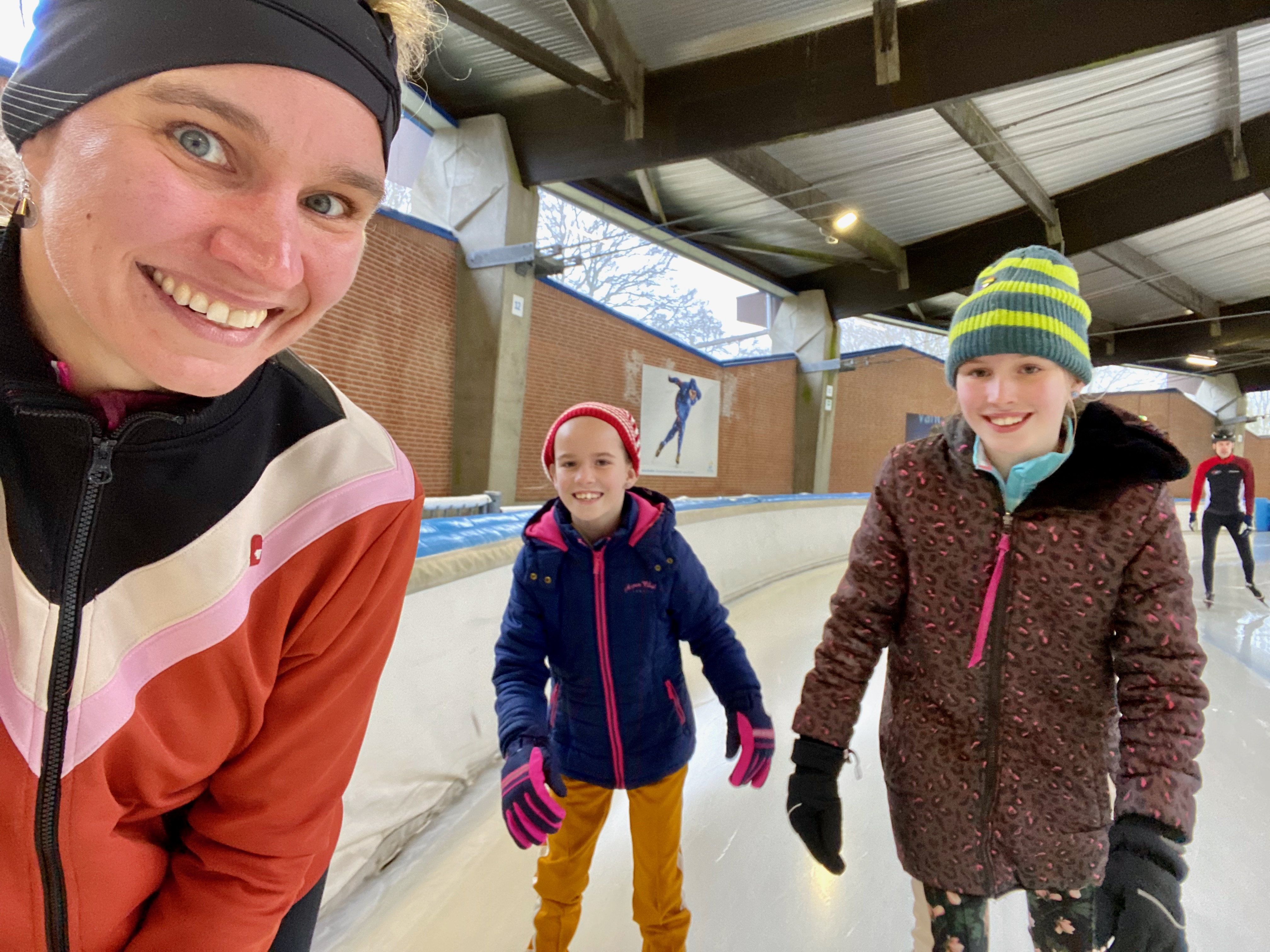 Af en toe laat ik de meiden even los en schaats ik een paar rondjes alleen. Ik voer het tempo op en merk dat het overstappen in de bochten, waar ik nooit echt goed in ben geweest, me nog best aardig af gaat. Ik voel lichte trots en vooral veel vrijheid, ook al is het uitzicht hier natuurlijk maar beperkt. Toch rem ik al gauw weer af en sluit ik aan bij mijn meisjes. Zelf schaatsen is leuk, samen schaatsen nog leuker. Hand in hand maken we de laatste meters van de dag. Reken maar dat we gauw weer terugkomen voor nog veel meer rondjes.