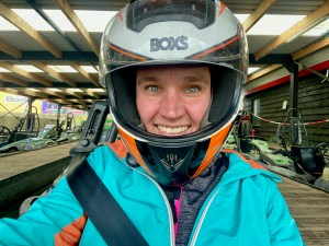 Mijn voeten plakten nog in mijn wandelschoenen, ik vermoedde zelfs een blaar onder de bal van de linkervoet, maar nu was het dus al tijd voor de volgende activiteit: karten. Dat heb ik één keer eerder gedaan, anderhalf jaar geleden, toen eveneens met mijn lief en zijn kinderen. Zij hadden al ervaring, ik bracht er weinig van terecht. Nu is mijn kans om mezelf te verbeteren.