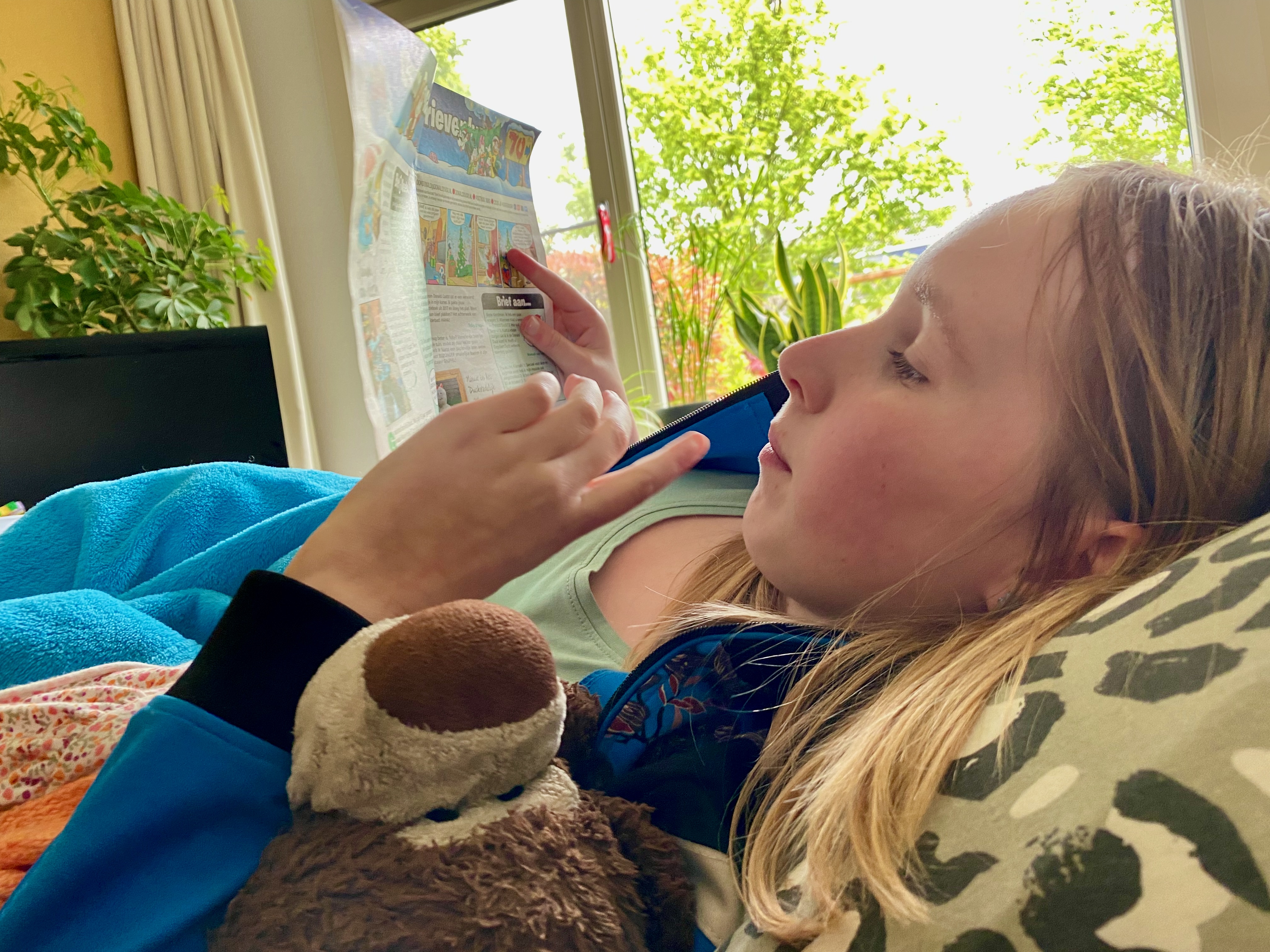 Omdat haar juf niet fit is, is mijn oudste dochter vandaag eerder vrij. Ze komt zelf thuis van school en geniet van de tijd die we met zijn tweeën hebben. We knuffelen, lunchen, lossen samen een Zweeds raadsel op en spelen een spelletje. Daarna wil ik even liggen, zodat ik weer genoeg energie heb als ik de jongste van school moet halen.