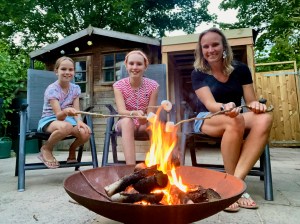 Toen ik vanmiddag voorstelde om vuur te maken, waren de meiden meteen enthousiast. ‘Marsh-mal-lows! Marsh-mal-lows!’ scandeerden ze. En dus knipten we twijgjes af, ontdeden ze van hun bladeren en sneden er punten aan. Daarna fietsten we naar de supermarkt om spekjes te kopen.
