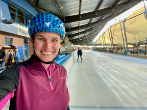 Het zijn er maar een paar en ik weet echt wel dat ik me niet met hen moet vergelijken, maar per ongeluk laat ik me toch imponeren door hun soepele bewegingen, dure klapschaatsen en strakke kleding met het logo van een schaatsvereniging erop. Prompt slaat de onzekerheid toe: kan ik het nog? Kom ik de bochten fatsoenlijk door? Ben ik wel goed genoeg?