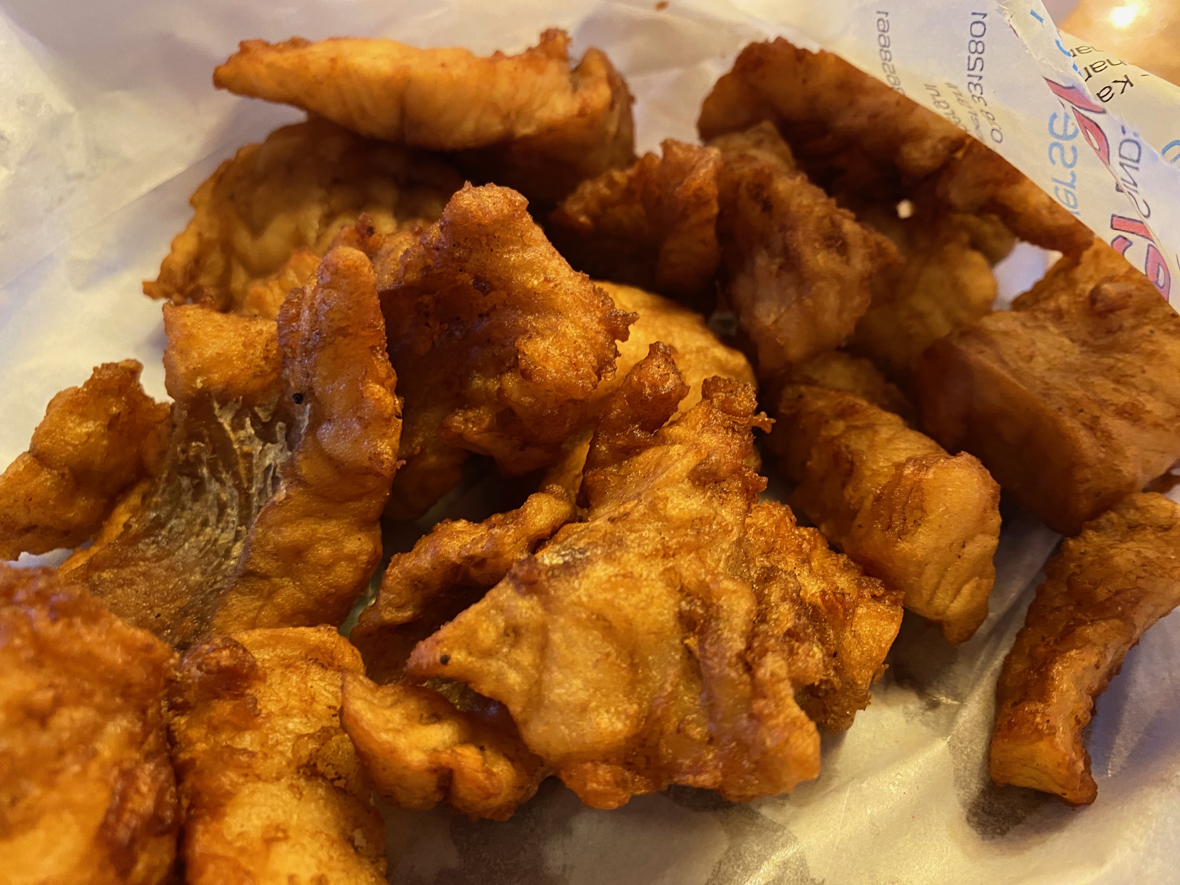 Dus deed ik verstandig en sloeg ik de supermarkt over. Voor een kruispunt moest ik echter wachten. Terwijl ik in de rij met andere fietsers en auto’s stond, keek ik naast me. Bij de kraam van de visboer stond géén rij, merkte ik op. Zonder verder na te denken draaide ik mijn fiets en bestelde een portie kibbeling.