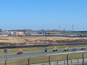 Ik hoor de motoren al aankomen ver voor ik ze zie. Hun gierende en grommende geluid zwelt langzaam aan. Dan zie ik hoe de coureurs op hoge snelheid aan komen rijden en aan ons voorbij vliegen. Ze liggen bijna plat op het asfalt als ze door de bochten gaan. Mijn lief heeft me hier wel filmpjes van laten zien, maar in het echt is het toch anders. Leuker!