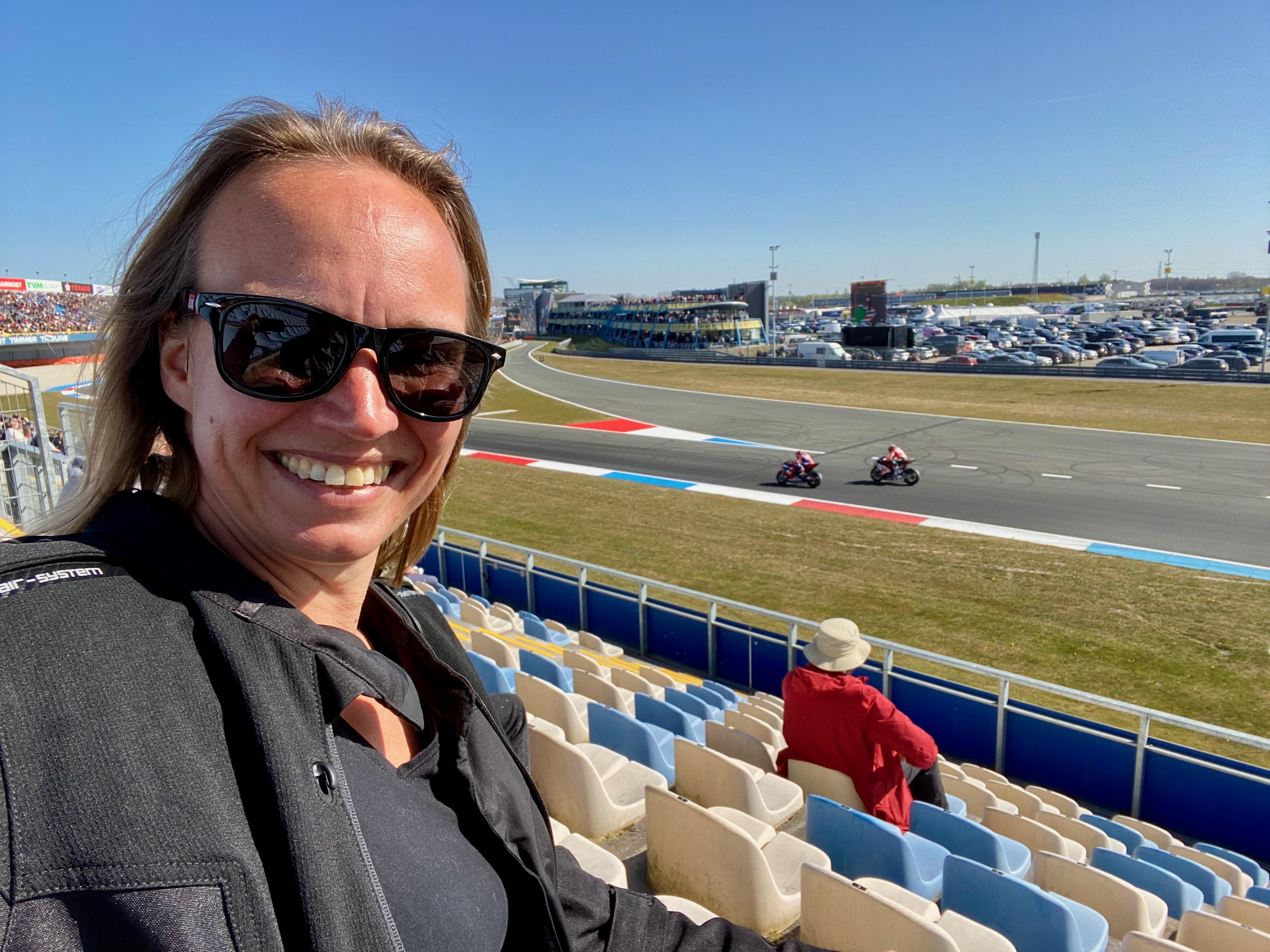 Gelukkig denkt mijn lief in oplossingen, dus gaan we vandaag het circuit verkennen tijdens het WK Superbike. Gisteren heb ik al rustig aan gedaan, zodat ik vandaag fit genoeg ben om zelf te rijden. Vanmorgen zijn we allebei op de motor gestapt en via mooie kronkelweggetjes naar Assen gereden; een goed begin van de dag.