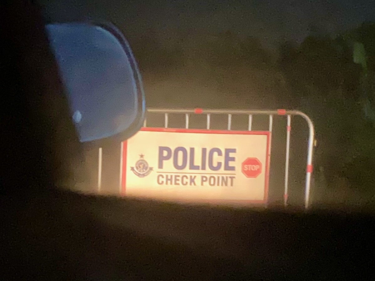 Het aantal controlepunten is flink toegenomen. Geregeld schijnt er een zaklamp door de auto. ‘Hello boss,’ groet onze vriend wanneer hem gevraagd wordt het raampje te openen. ‘Voor hoeveel personen is deze auto?’ vraagt de agente. ‘Voor vijf,’ antwoordt hij, ‘but the boys are counting half.’ Ondanks zijn creatieve rekensom vraagt de agente hem om papieren. Die geeft hij, terwijl hij uitstapt voor de rest van het gesprek.