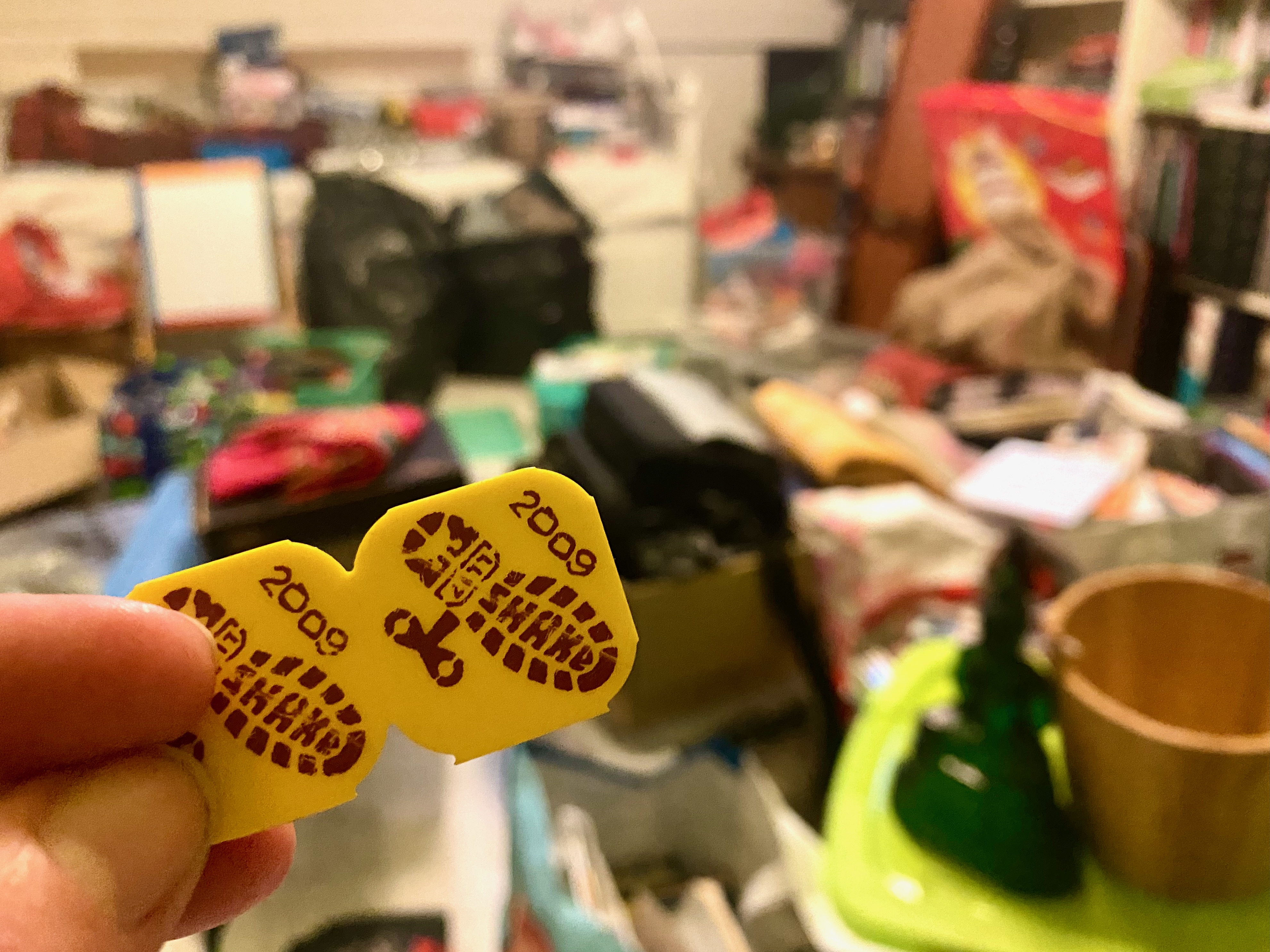 ‘Kijk!’ schreef ik gisteren enthousiast aan mijn lief bij de foto die ik hem appte. ‘Lowlandsmuntjes uit 2009!’ Hij reageerde met een vrolijk lachende emoticon. Hetzelfde bericht stuurde ik naar een vriend. Zijn reactie was heel anders: ‘Die zou ik op eBay zetten!’ Daarop begon ik te twijfelen. Niet om de waarde van de muntjes, wel om de herinnering erbij. Zou ik ze dan toch weer uit de vuilniszak vissen?